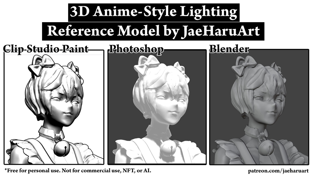This product can be opened and used in 3D with interactive lighting in Clip Studio Paint, Photoshop, Blender, or any other software that supports .OBJ file import.